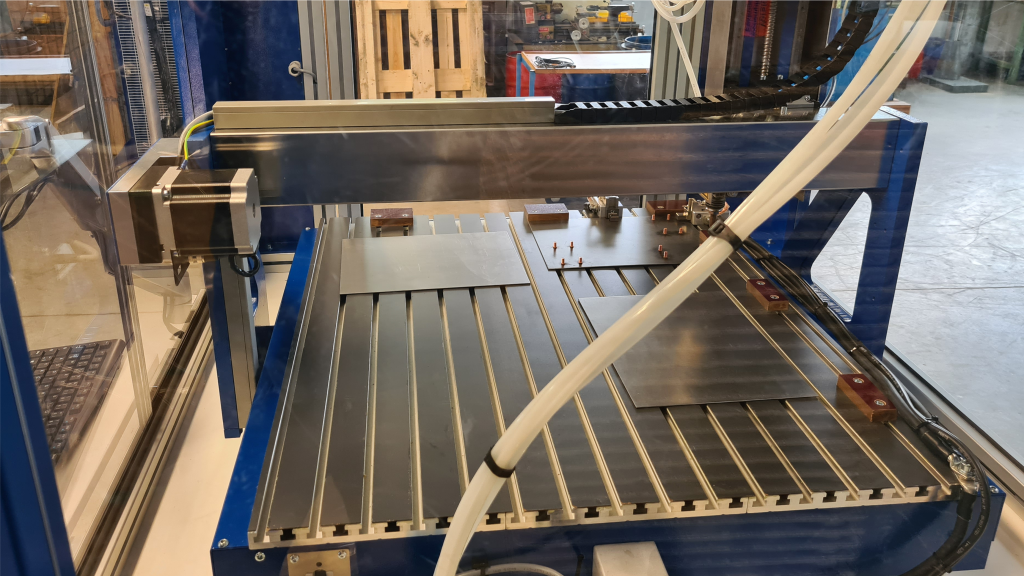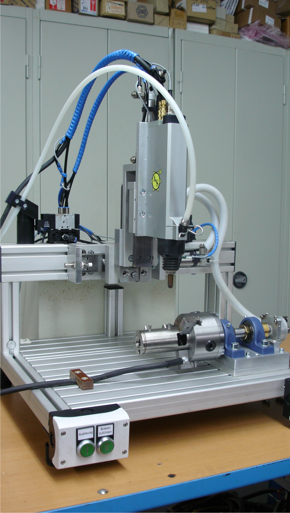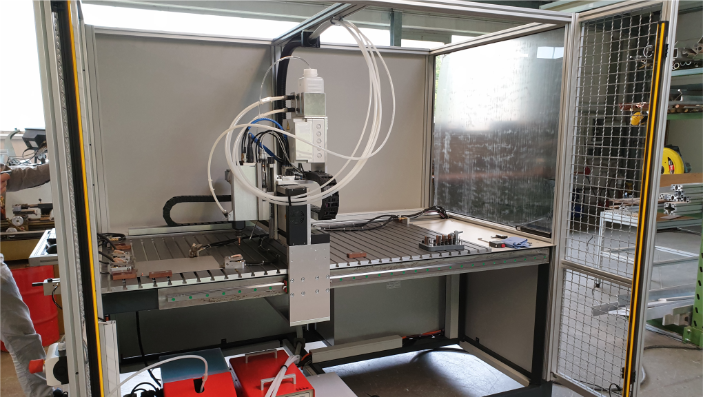 eine positionierende Ein-Achs CNC, bis hin zur 5 Achs Anlage mit Drehachsen, Wechsel- und Drehtischen.